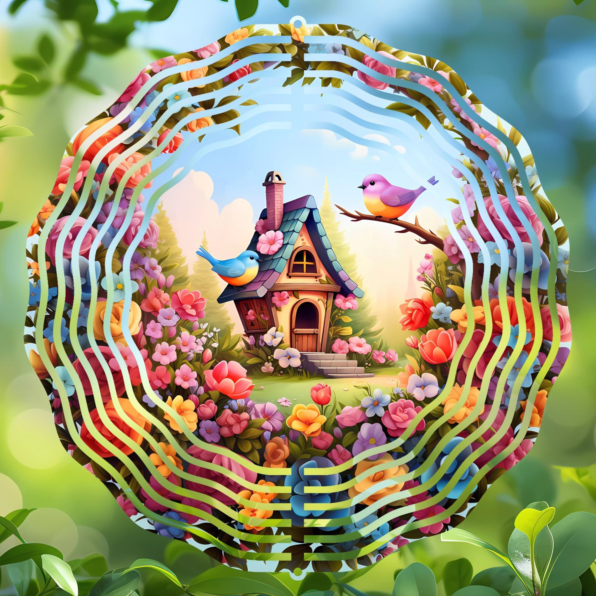 Bird House Floral Wind Spinner – Whimsical Decor for Bird Lovers and Charming Outdoor Aviaries