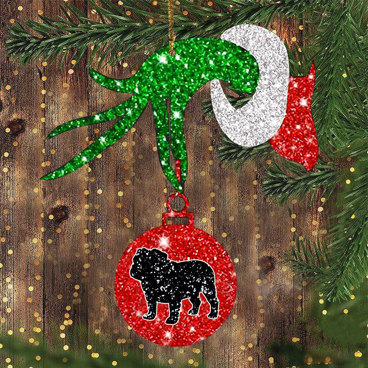 Bulldog Christmas Ornament Green Hand With Ball Ornament Best Gifts For Dog Lovers.