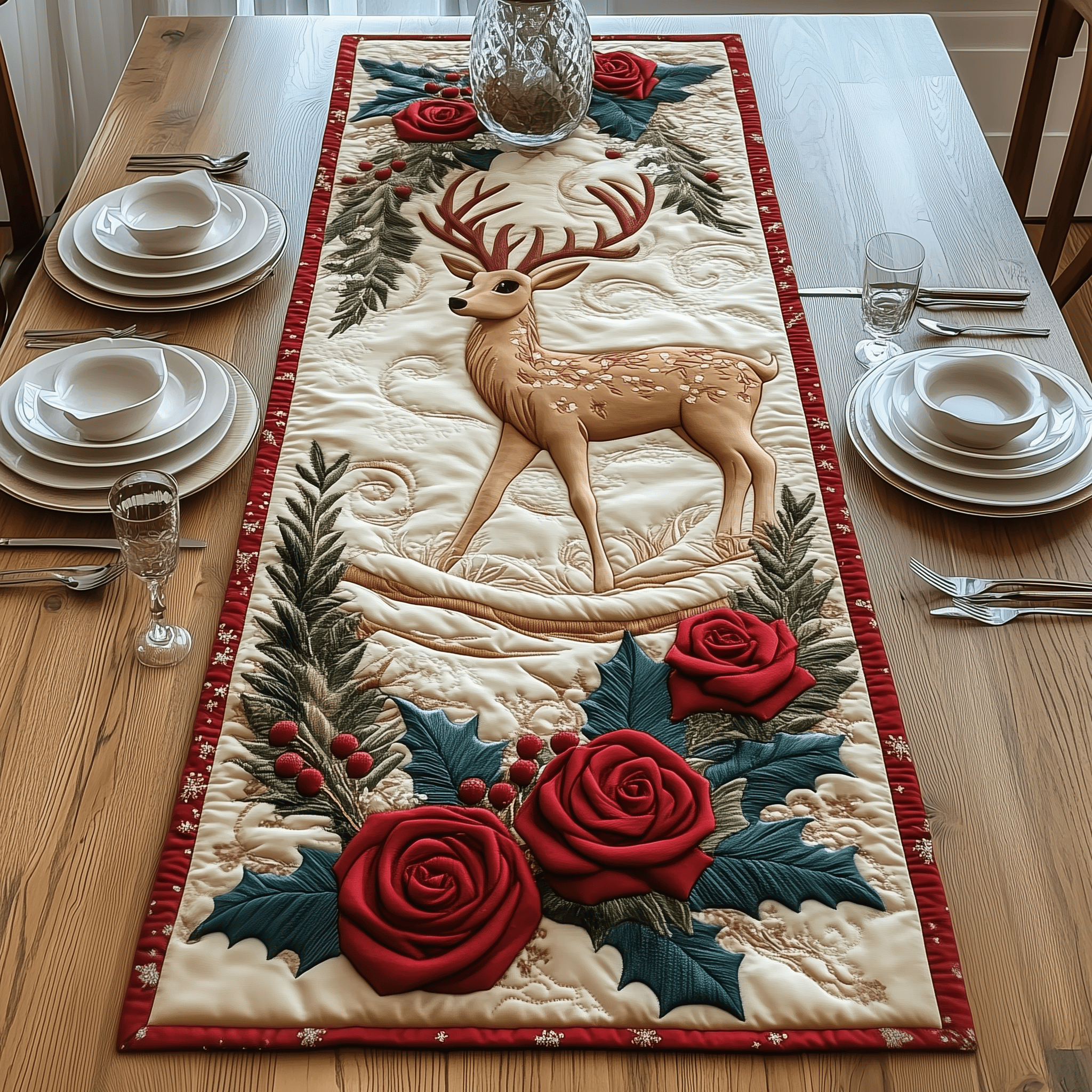 Christmas Deer Quilted Table Runner Celebrate Christmas with Natural Beauty.