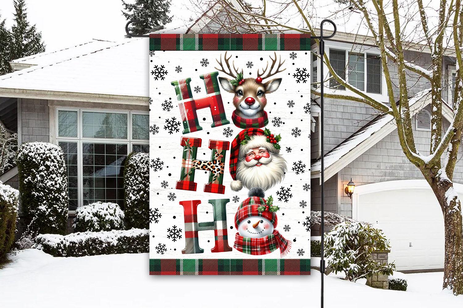 Christmas Santa Deer Snowman Hohoho Garden Flag – Festive Winter Scene with Holiday Characters