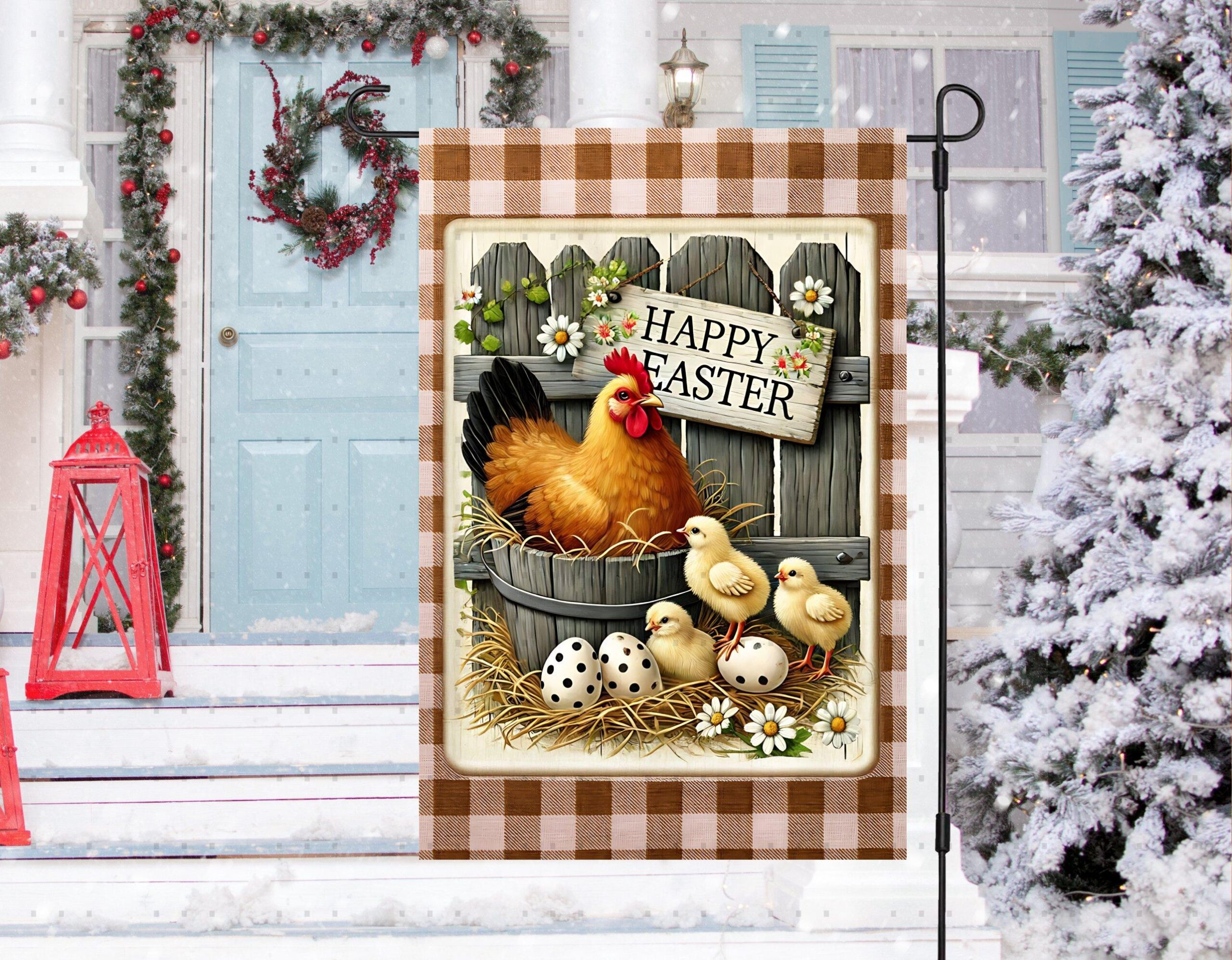 Easter Garden Flag Yard Decor with Plaid Easter Chicken and Rustic Love – Outdoor Spring Display