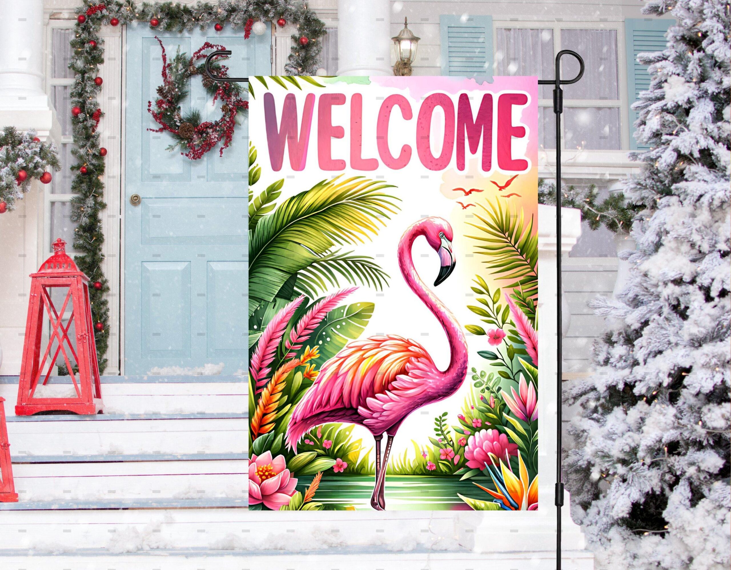 See the product images of the Flamingo Garden Flag with Tropical Summer - Vibrant Outdoor Porch Decor below: