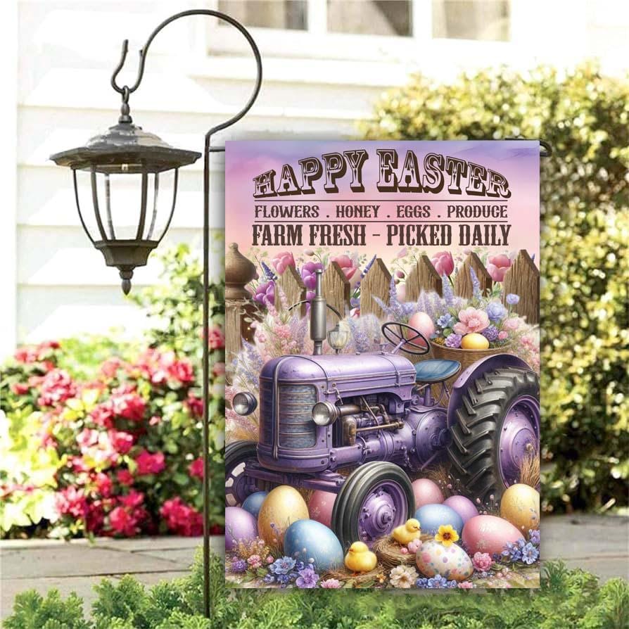Happy Easter Farm Tractor Gardren Flag – Rustic Spring Charm with Farmhouse Easter Vibes