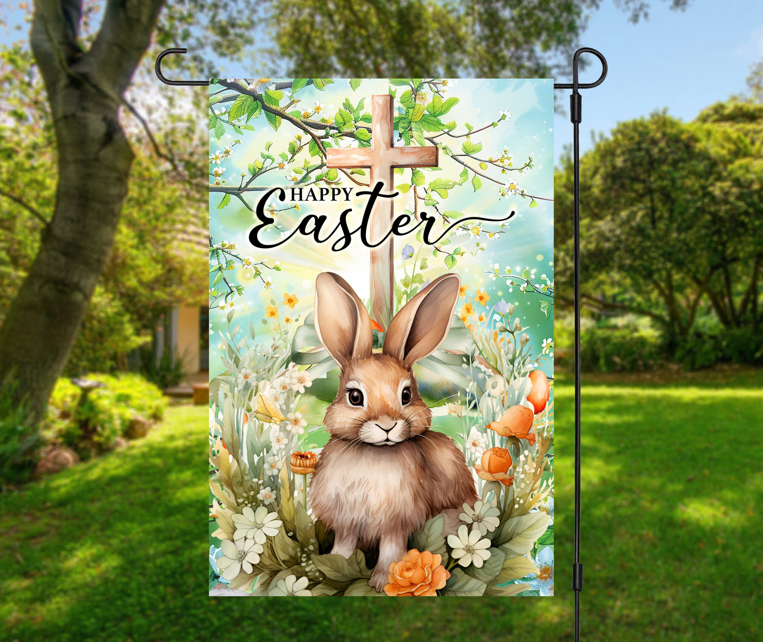 Happy Easter Floral Bunny Garden Flag #102 – Charming Spring Display with Bunny and Flowers