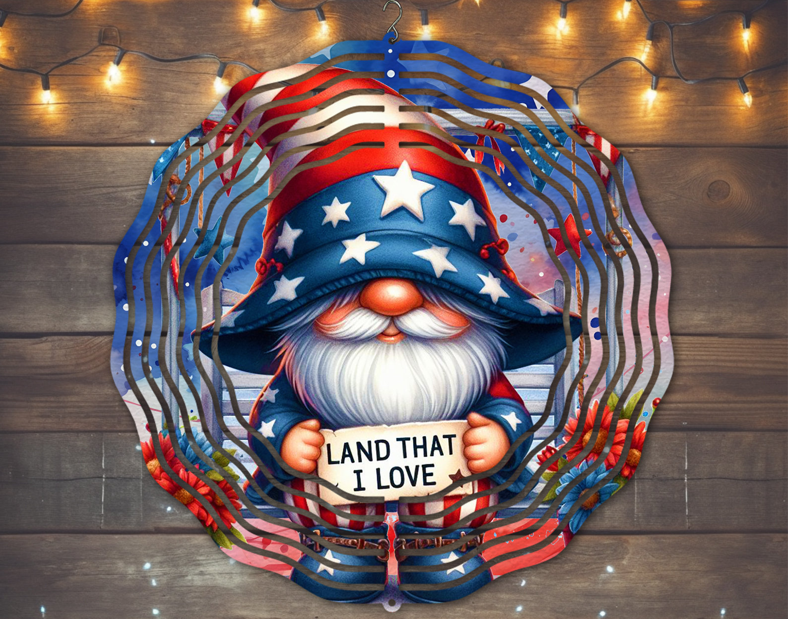 See the product images of the Patriotic Gnome Wind Spinner - Charming Outdoor Decor for USA Enthusiasts below: