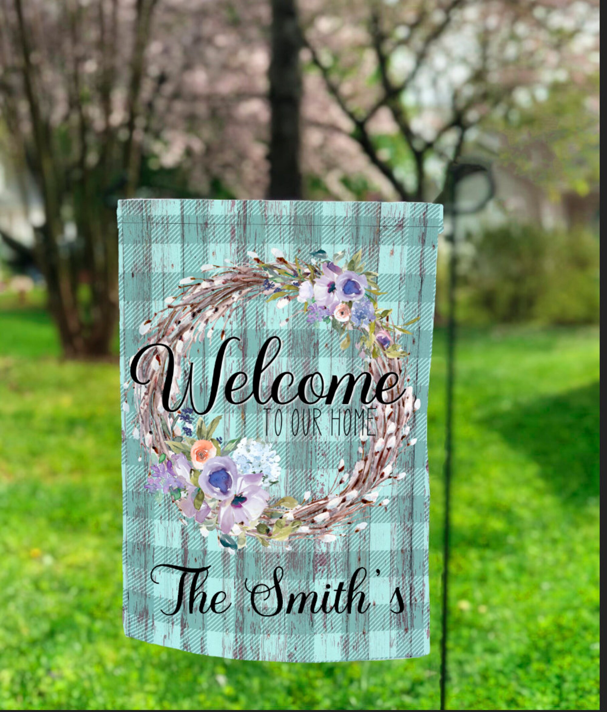 Personalized Aqua Wreath Spring Garden Flag – Fresh Easter Patio Elegance Decor