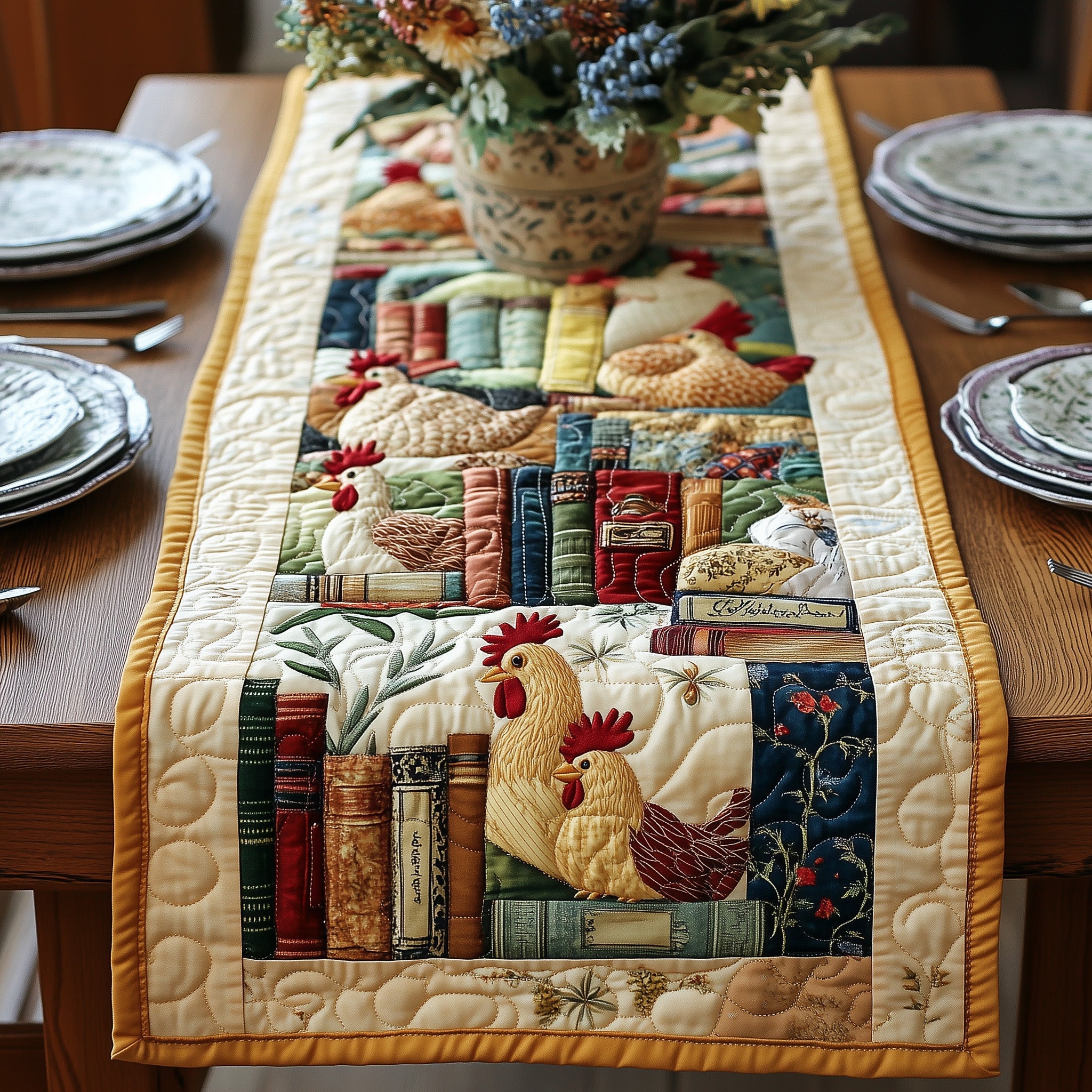 See the product images of the Reading Chicken Quilted Table Runner Special Occasion Table Runner Gift below: