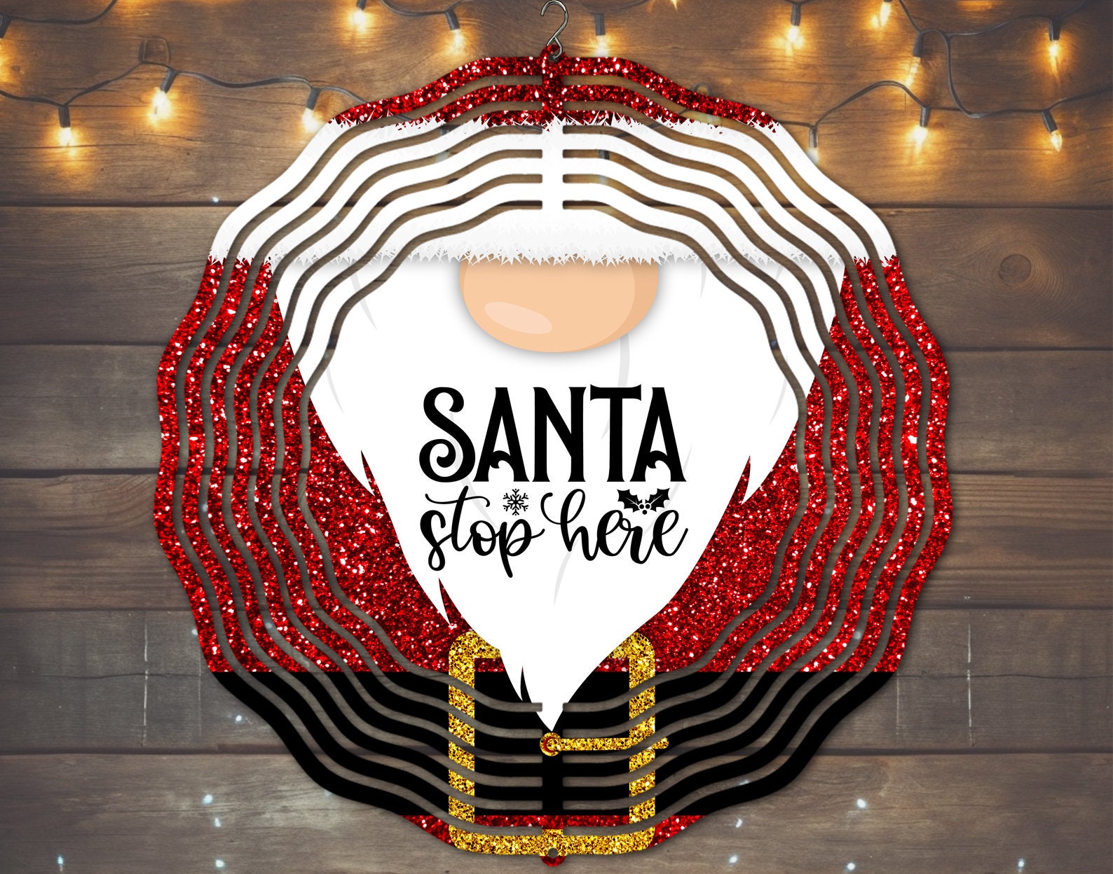 Santa Please Stop Here Wind Spinner – Playful Holiday Art for Christmas Charm