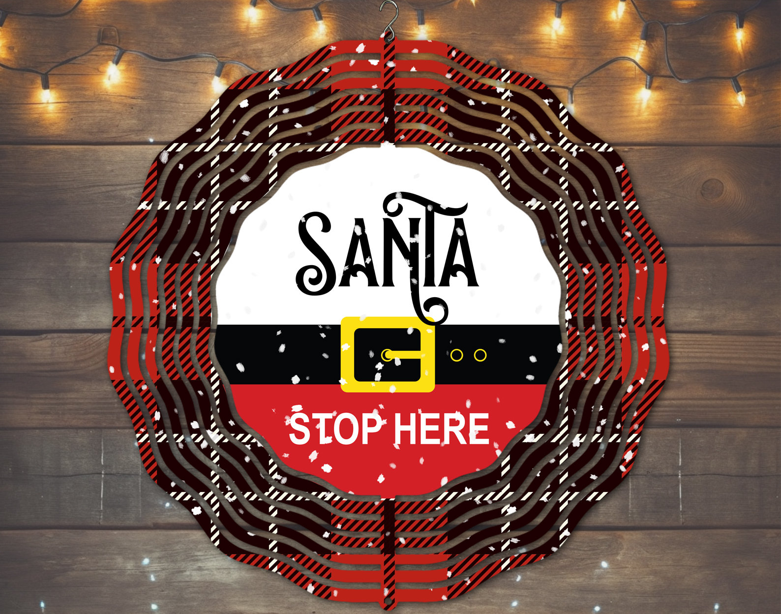 Enhance your outdoor space with the Santa Please Stop Here Wind Spinner #101. Crafted with vibrant colors and durable materials, this wind spinner adds a touch of charm and movement to your garden or patio.