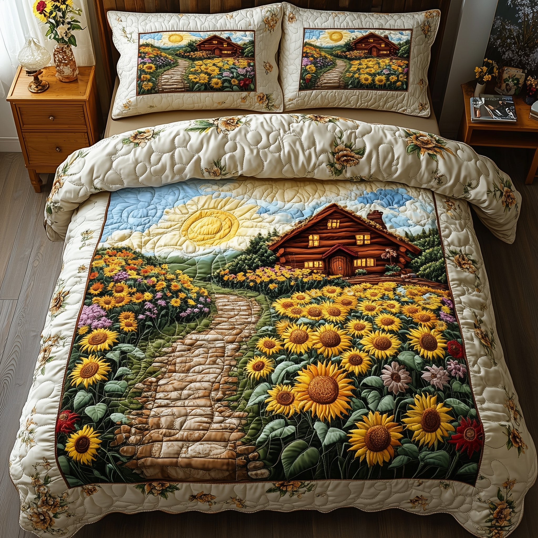Sunshine Meadow Quilted Bedding Set Duvet Cover Bed Sheet Xmas Present For Sister In Law